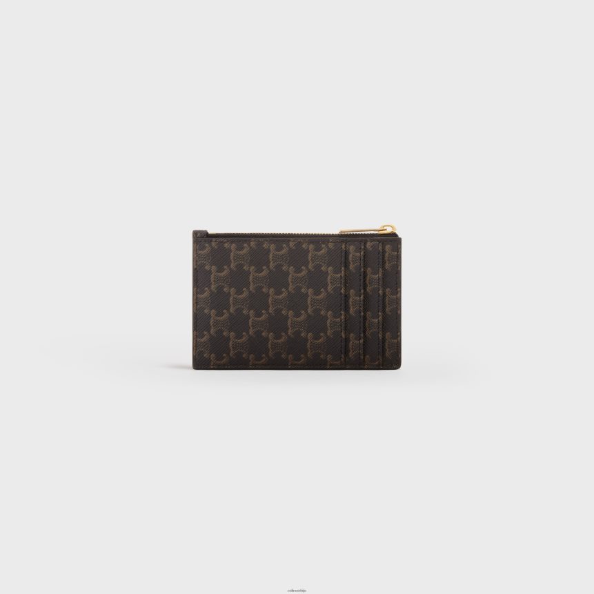 држач за картице са патентним затварачем од триомпхе платна и јагњеће коже тан CELINE Z2BBHT505 Прибор Жене