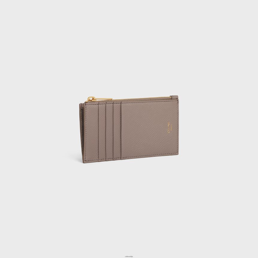 Компактни држач картица са патентним затварачем од зрнасте телеће коже шљунак CELINE Z2BBHT507 Прибор Жене