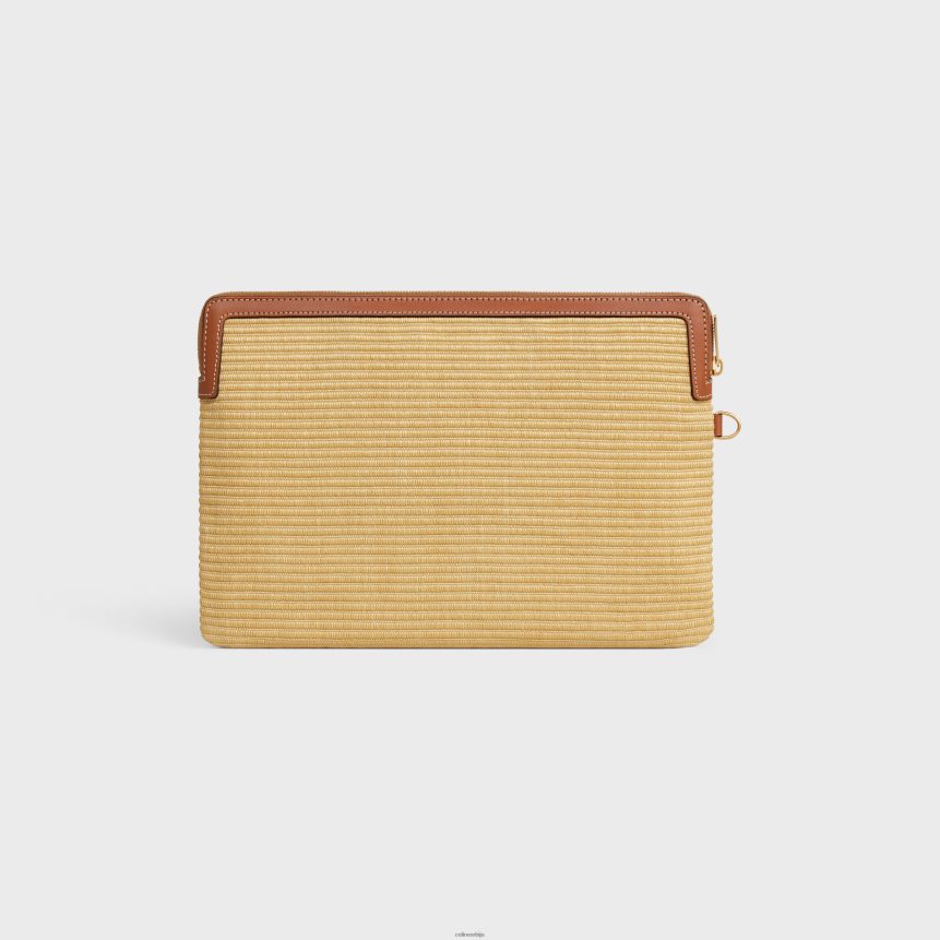 мала торбица са потписом на каиш од текстила и телеће коже са ефектом рафије природан/тан CELINE Z2BBHT403 Прибор Жене