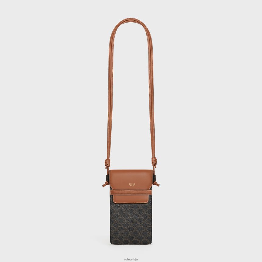 торбица за телефон са поклопцем од триомпхе платна и јагњеће коже тан CELINE Z2BBHT511 Прибор Жене