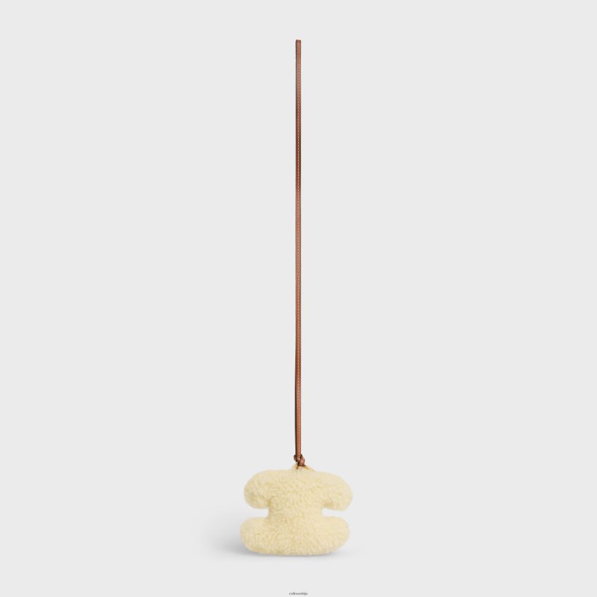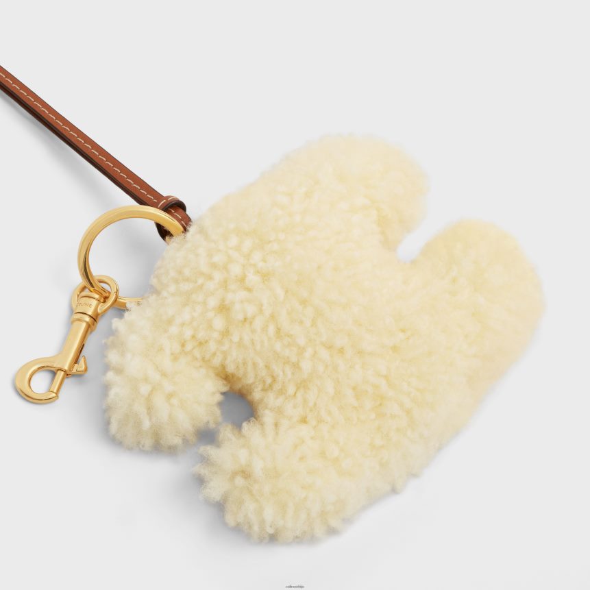 триомпхе пом-пон привезак за кључеве од стрижене и глатке телеће коже са златном завршном обрадом природан/тан CELINE Z2BBHT438 Прибор Жене