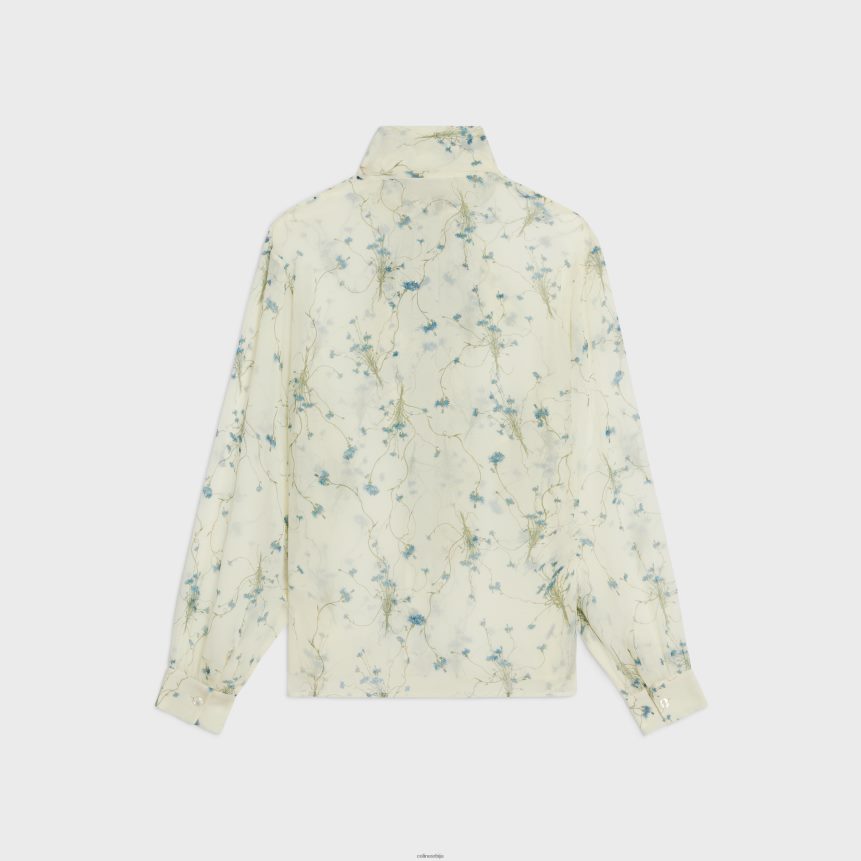 лаваллиере блуза од свиленог жоржета ваниле/блуе CELINE Z2BBHT637 Одећа Жене