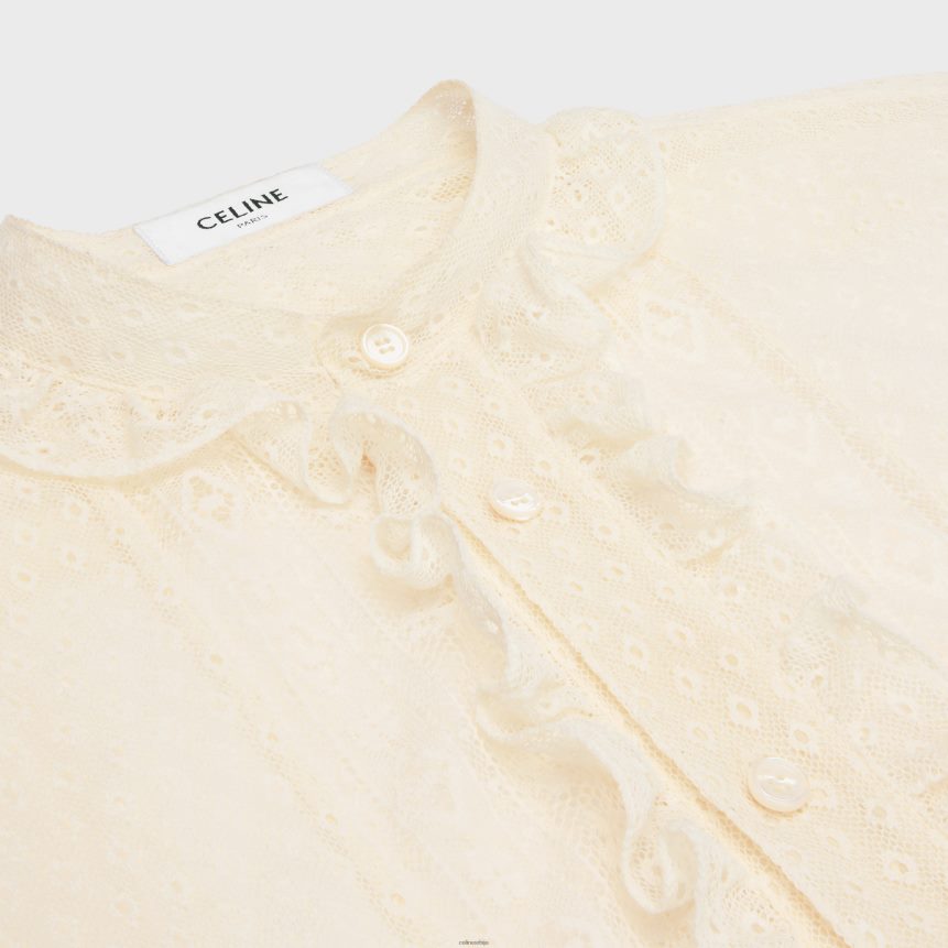 Роми скраћена кошуља од чипке и памука цреме CELINE Z2BBHT579 Одећа Жене