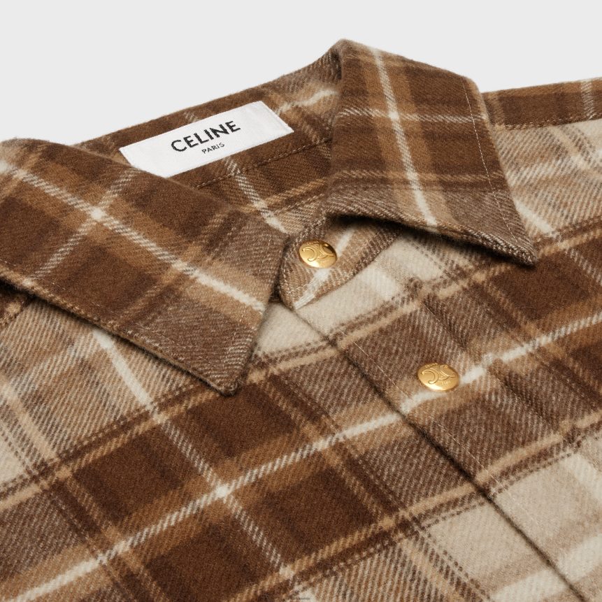 скраћена кошуља од карираног кашмира беж / камила / смеђа CELINE Z2BBHT833 Одећа Жене