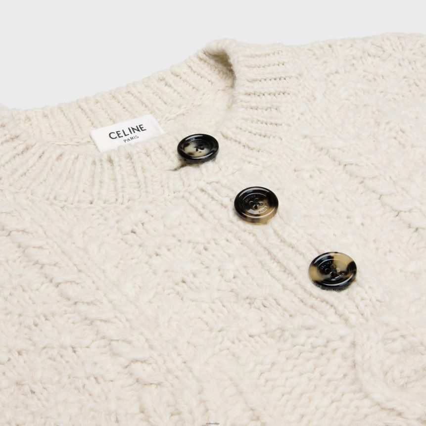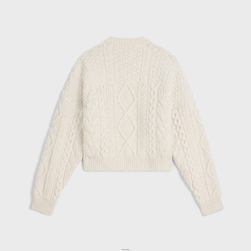 Триомпхе џемпер с округлим изрезом од аран вуне бело CELINE Z2BBHT565 Одећа Жене