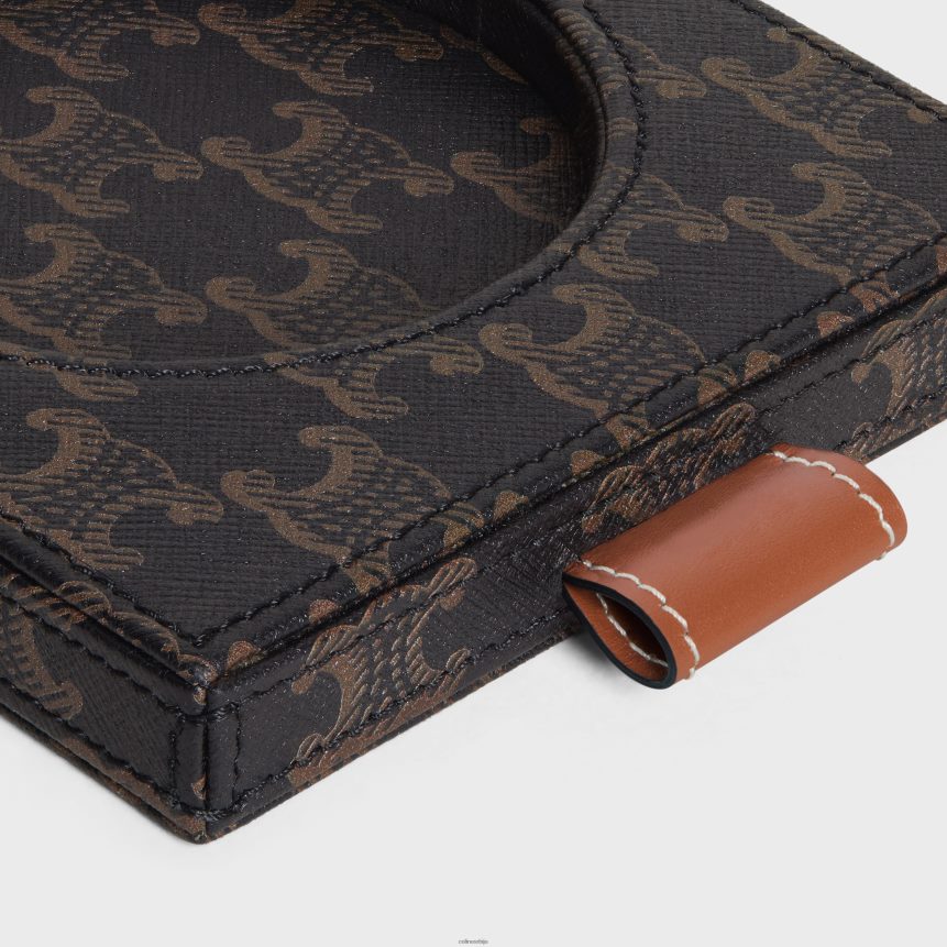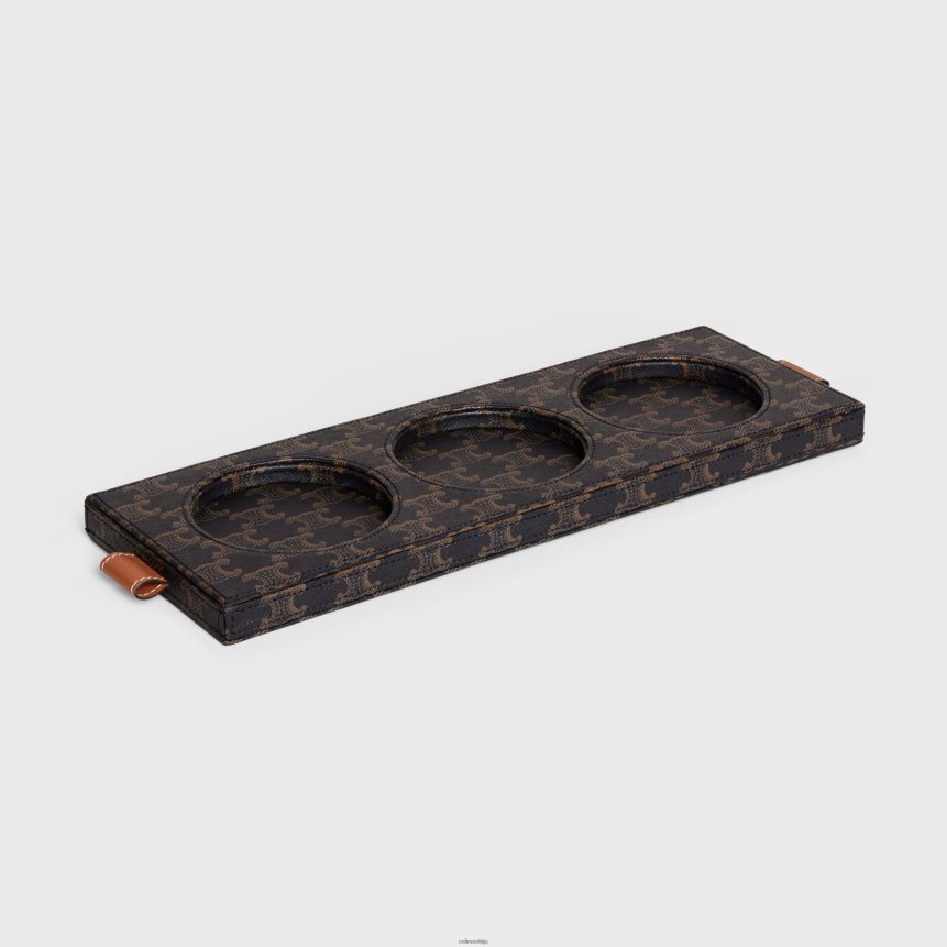 послужавник за свеће од напа јагњеће коже са принтом на платну Триомпхе и телећом кожом црна/тан CELINE Z2BBHT1526 Прибор мушкарци