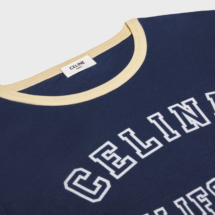 калифорнијска мајица 70-их у памучном дресу блеу нуит/пита од лимуна/офф вх CELINE Z2BBHT776 Одећа Жене