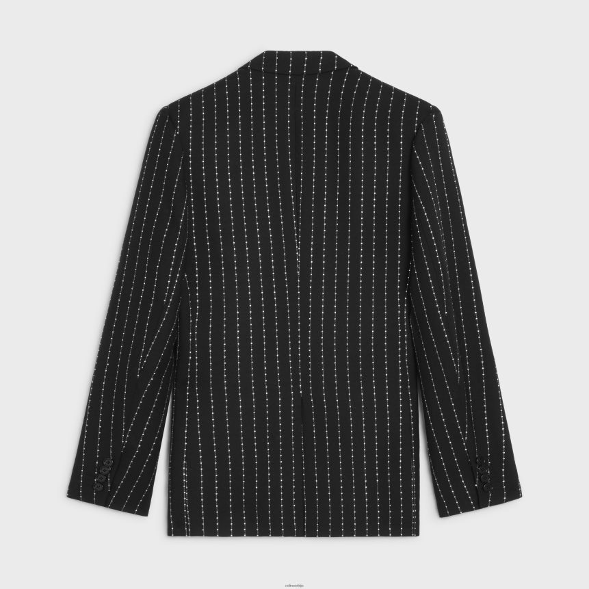 везена класична јакна од пругасте вуне црно бели CELINE Z2BBHT1880 Одећа мушкарци