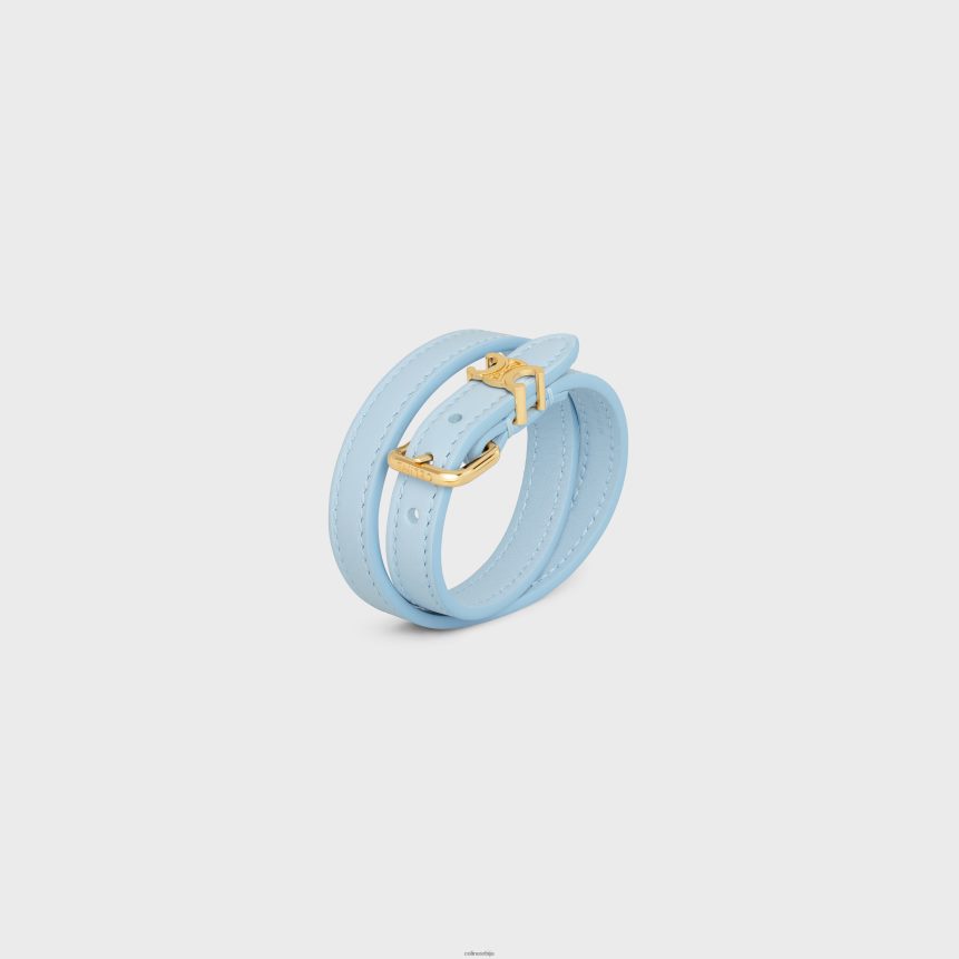 лес цуирс дупла наруквица од телеће коже и месинга са златном завршном обрадом златно/бледо плава CELINE Z2BBHT1269 Прибор Жене