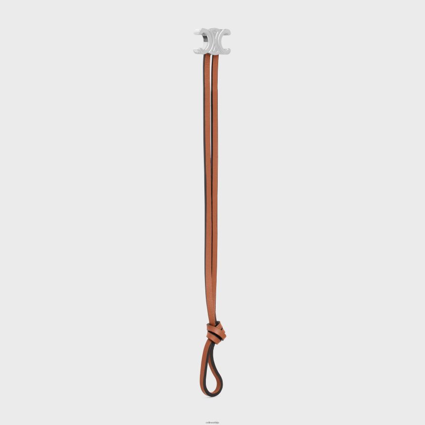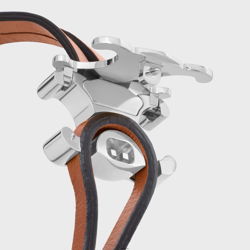 триомпхе наруквица са копчом од телеће коже и месинга са завршном обрадом од родијума тан/сребро CELINE Z2BBHT2282 Прибор мушкарци