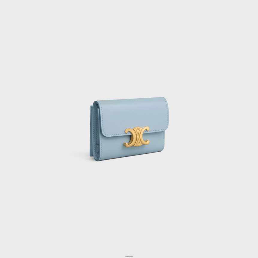 компактни новчаник са новчићем тријумфом од сјајне телеће коже светло плава CELINE Z2BBHT410 Прибор Жене