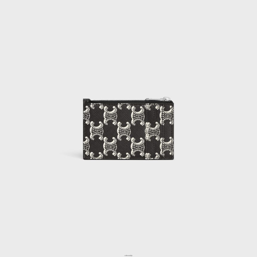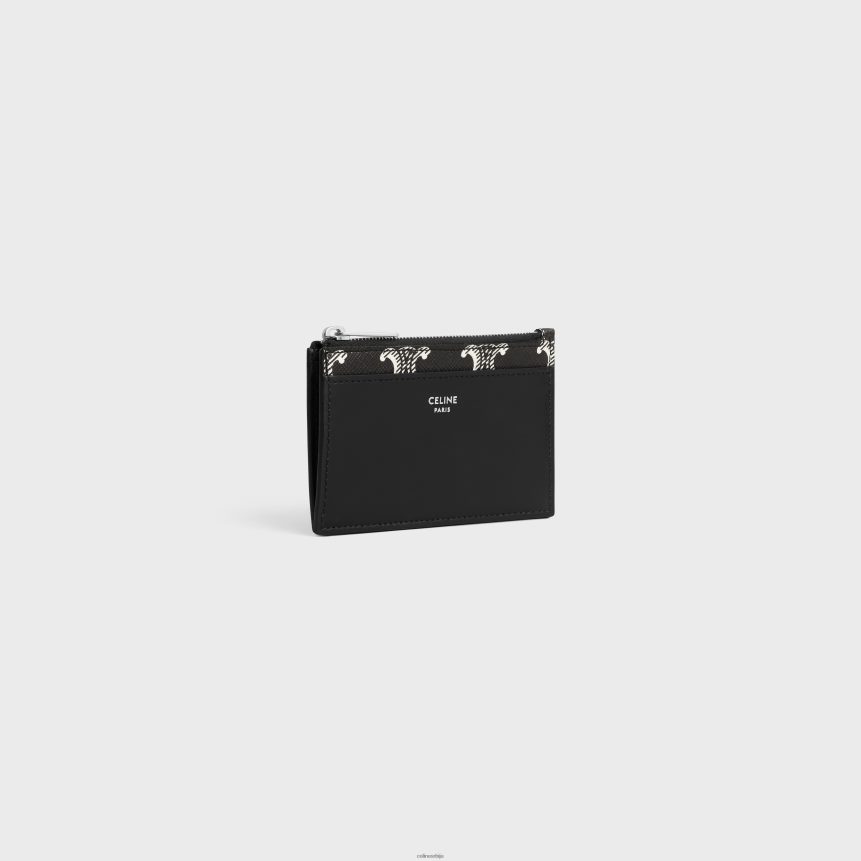 држач за картице са патентним затварачем од двобојног платна Триомпхе и телеће коже црно бели CELINE Z2BBHT2120 Прибор мушкарци