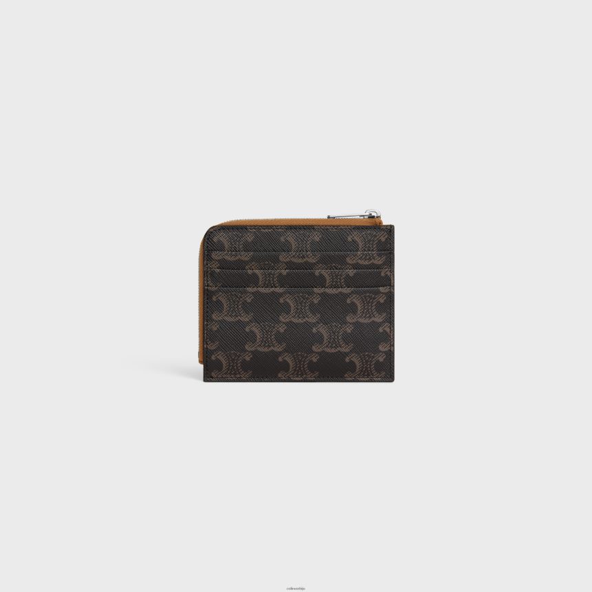 држач картица са патент затварачем са торбицом од триомпхе платна и телеће коже тан CELINE Z2BBHT2127 Прибор мушкарци