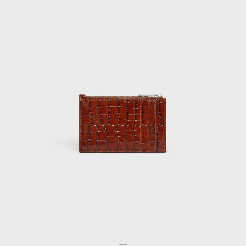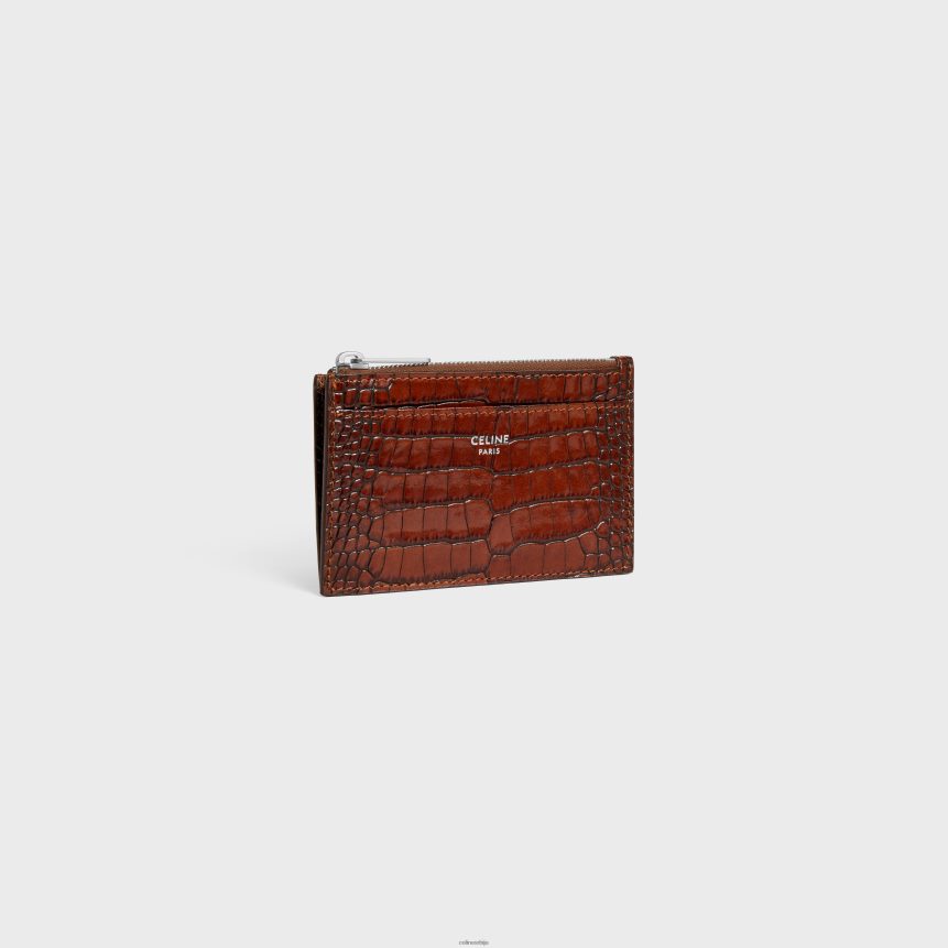 држач картице са патентним затварачем од крокодилске рељефне телеће коже браон CELINE Z2BBHT2155 Прибор мушкарци