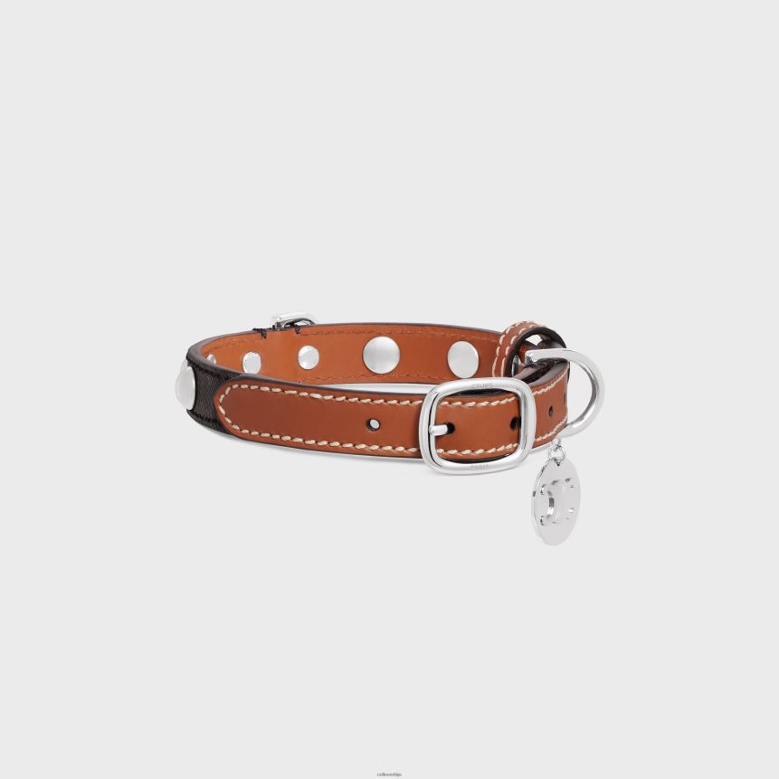 мала танка огрлица за псе од тријумфалног платна и телеће коже са копчама тан CELINE Z2BBHT1738 Прибор мушкарци