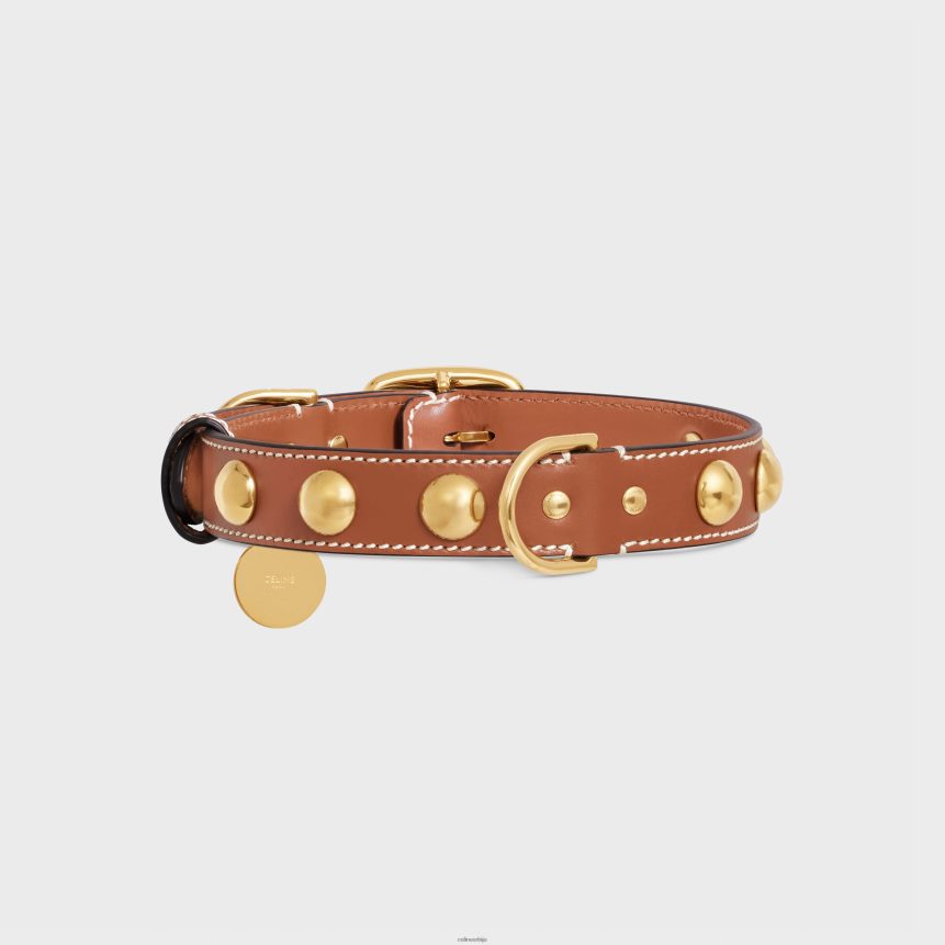 широка средња огрлица за псе од глатке телеће коже са чавлима тан CELINE Z2BBHT1760 Прибор мушкарци