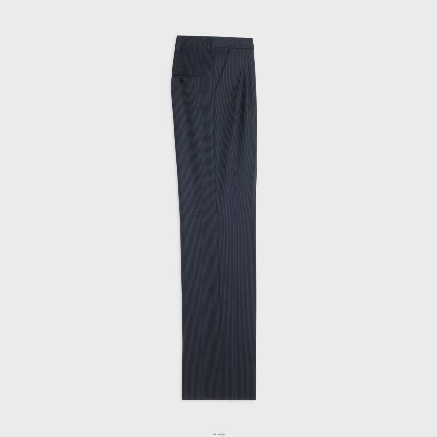 Početna| Жене| Одећа| панталоне| дупле плисиране тикси панталоне од пругасте вуне нави/цраие CELINE Z2BBHT871 Одећа Жене