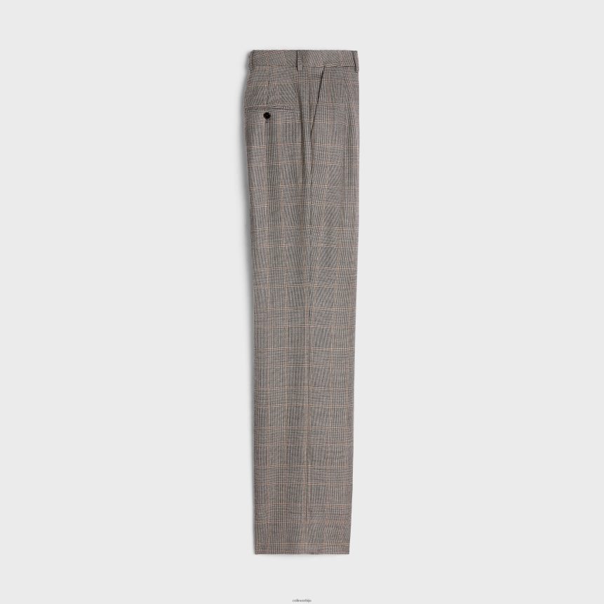 плисиране панталоне од карираног фланела ноир/ванилле/цхатаигне CELINE Z2BBHT873 Одећа Жене