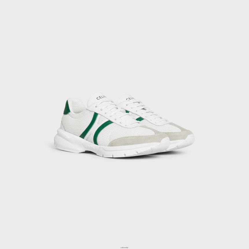 Руннер цр-01 ниске патике на пертлање од мреже, телеће коже и антилоп телеће коже оптичка бела/зелена/сива CELINE Z2BBHT914 обућа Жене