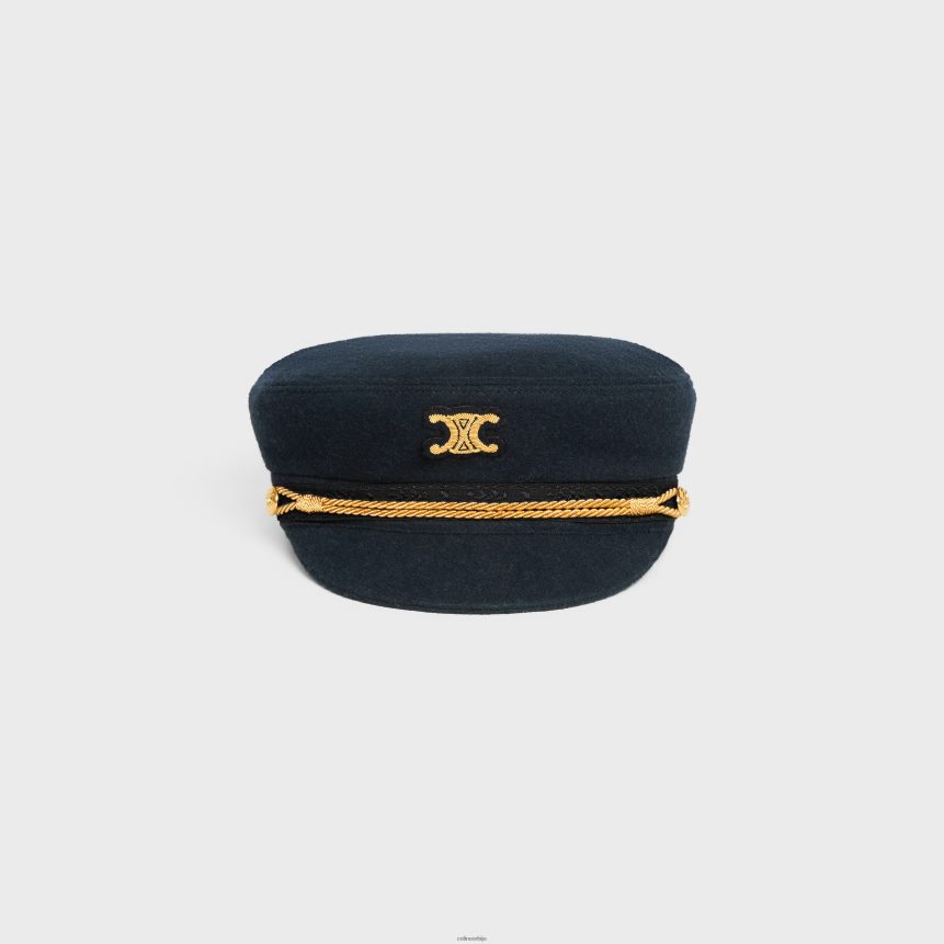 триомпхе морнарска капа од вунене тканине тамно тегет CELINE Z2BBHT1195 Прибор Жене