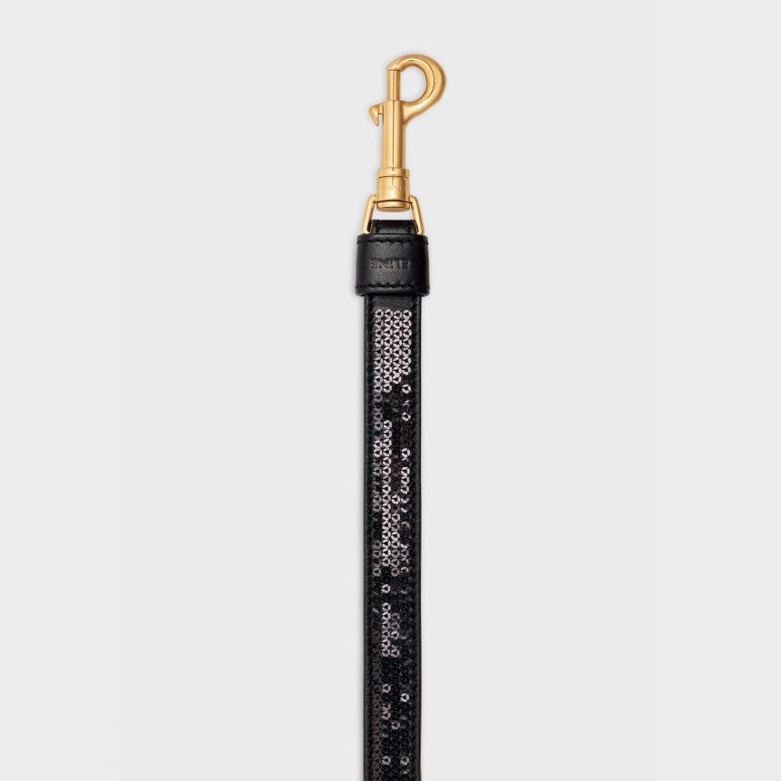 танак поводац за псе од шљокица и телеће коже црн CELINE Z2BBHT1722 Прибор мушкарци
