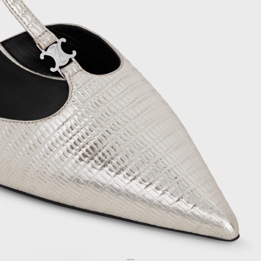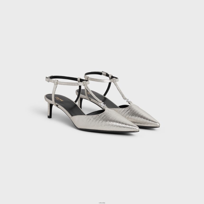 киттен т-бар ремен пумпа од метализоване телеће коже утиснуте гуштером платинијум CELINE Z2BBHT979 обућа Жене