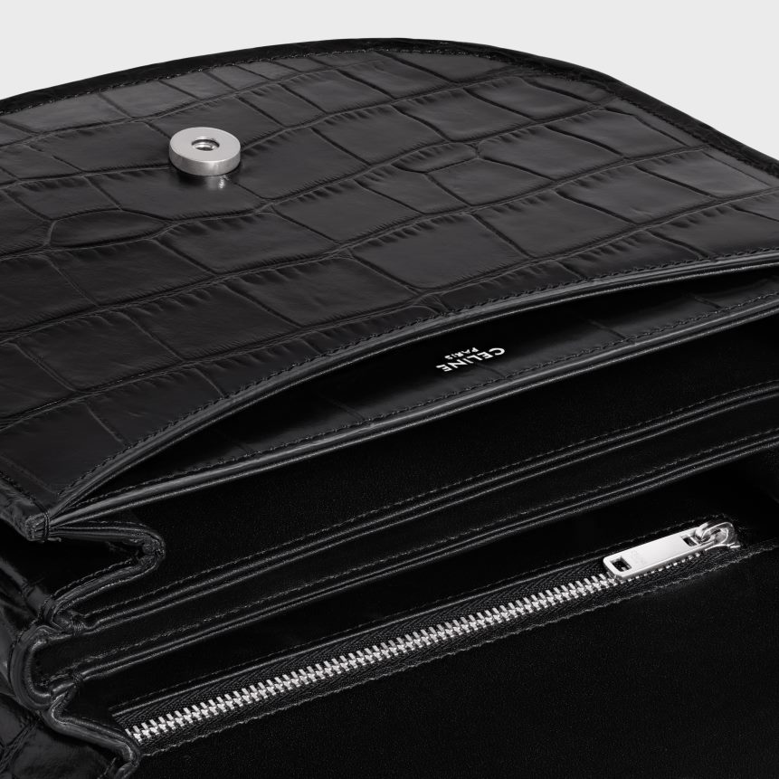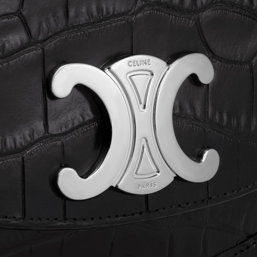 средњи бесаце триомпхе од крокодилске рељефне телеће коже црн CELINE Z2BBHT2106 Прибор мушкарци
