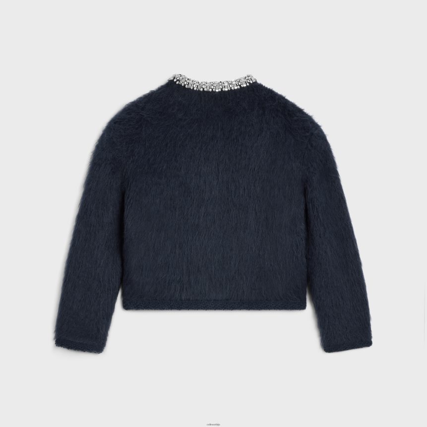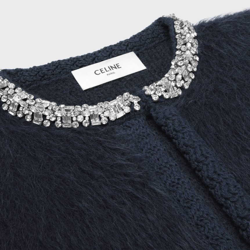 везени кардиган од брушеног мохера Плави CELINE Z2BBHT617 Одећа Жене