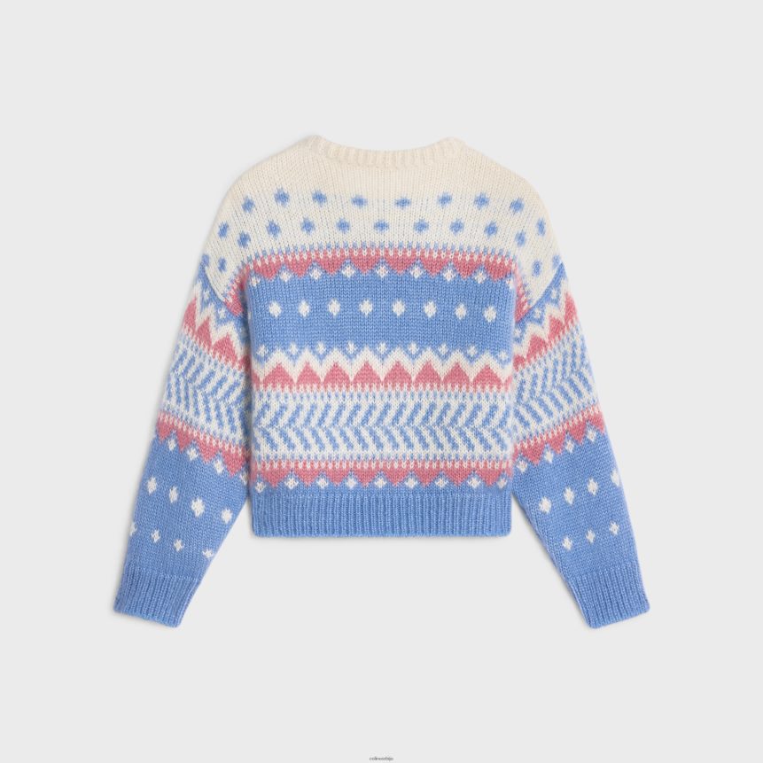 пуловер са овратником од фер исле мохера и свиле светло плава CELINE Z2BBHT606 Одећа Жене