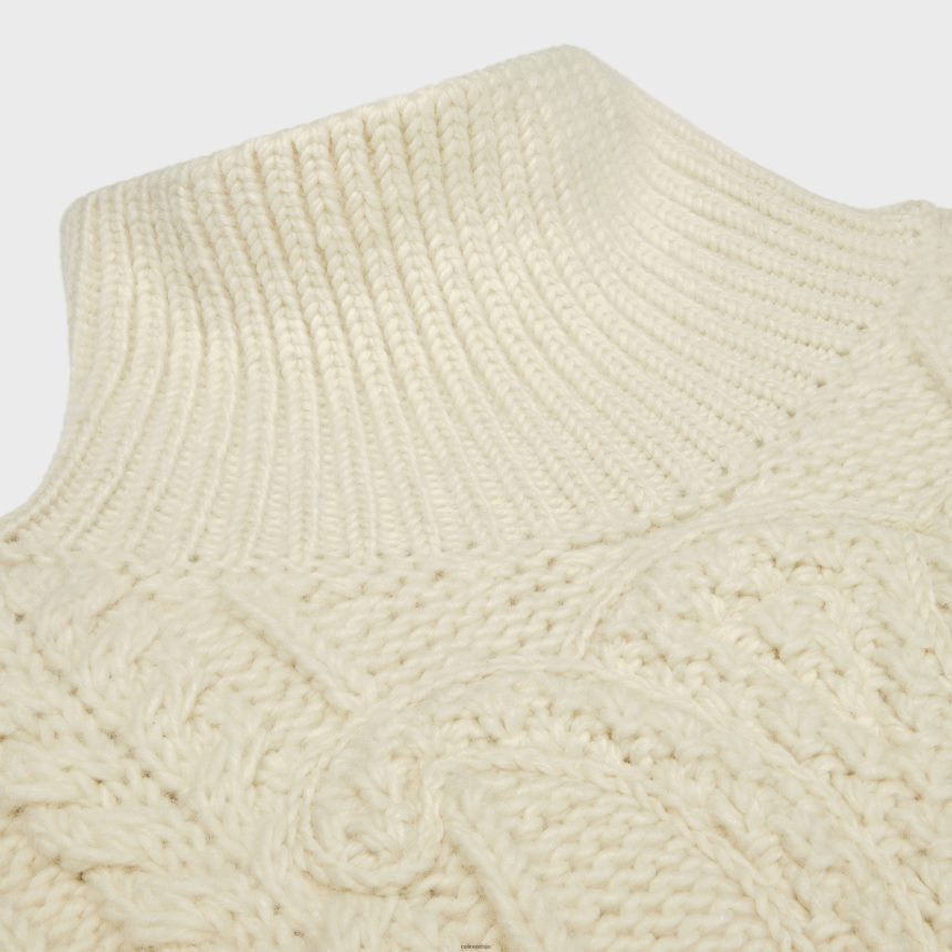џемпер са високим изрезом од аран алпаке вуне бело CELINE Z2BBHT609 Одећа Жене
