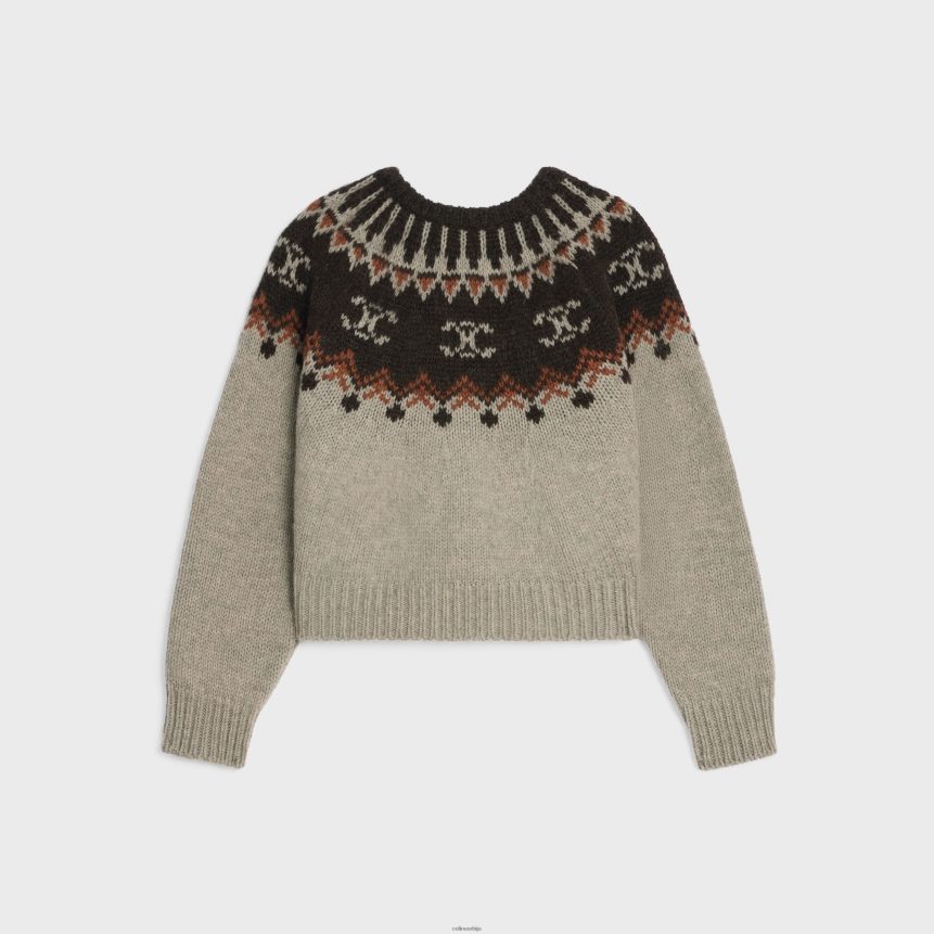 џемпер са округлим изрезом од триомпхе фаир исле вуне средње сива CELINE Z2BBHT604 Одећа Жене