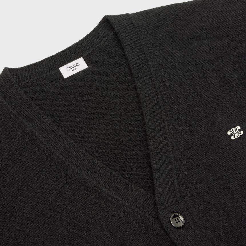 Триомпхе дуги кардиган од кашмир вуне црно/бели CELINE Z2BBHT1983 Одећа мушкарци