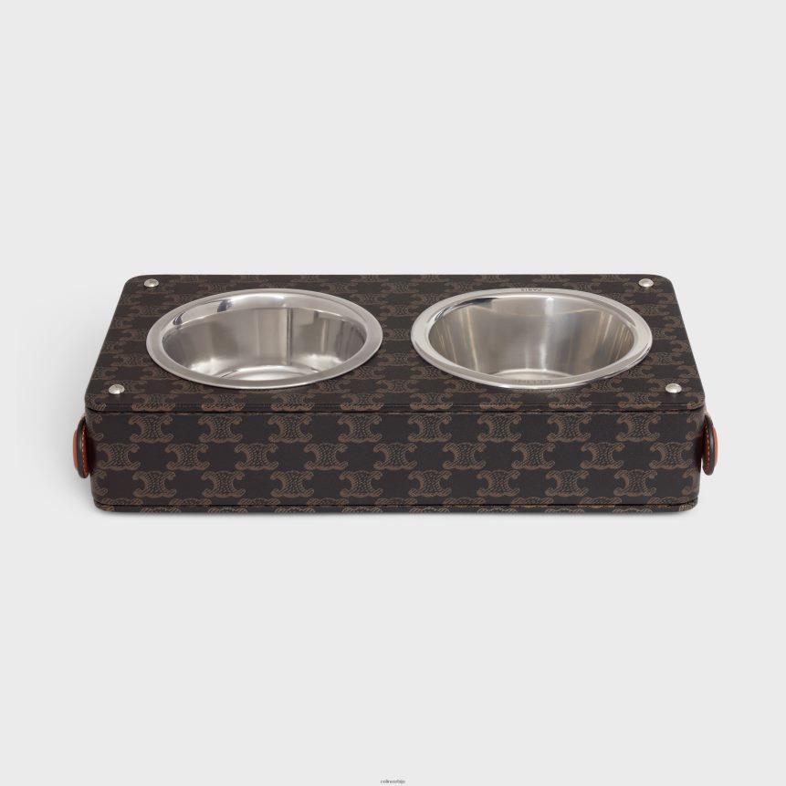 Početna| унисекс прибор| дупла посуда за псе од напа јагњеће коже са принтом на платну и телеће коже тан CELINE Z2BBHT1707 Прибор мушкарци