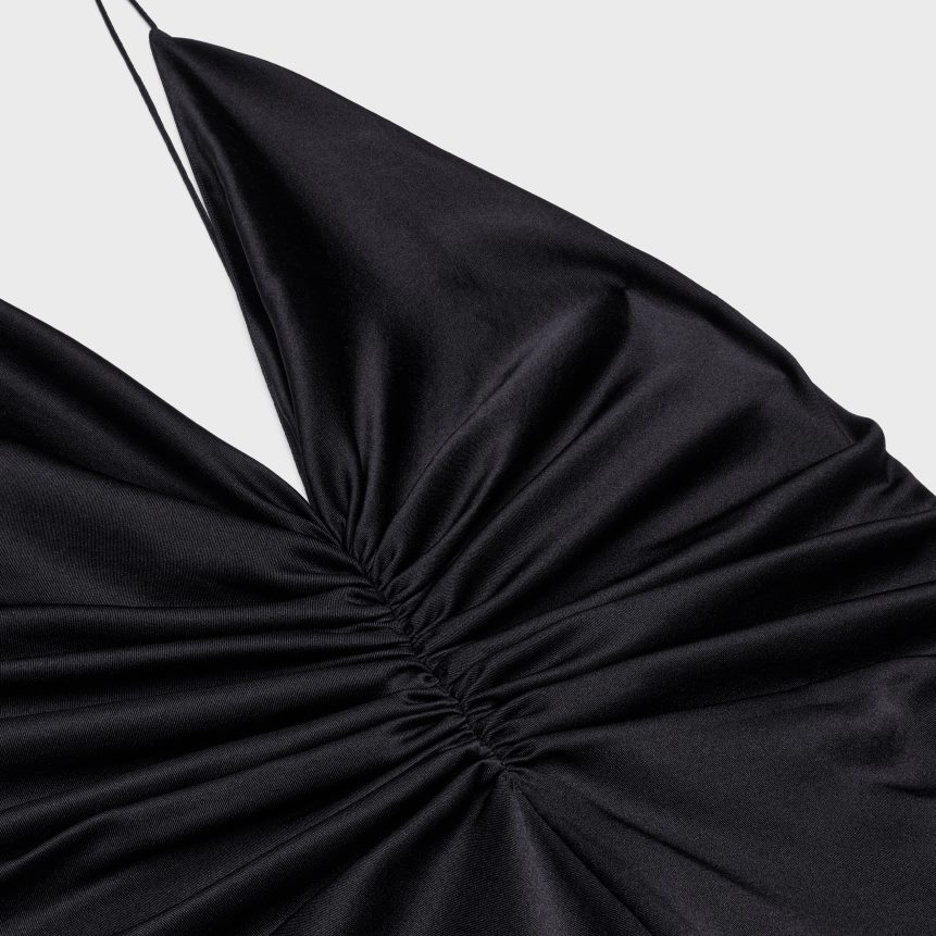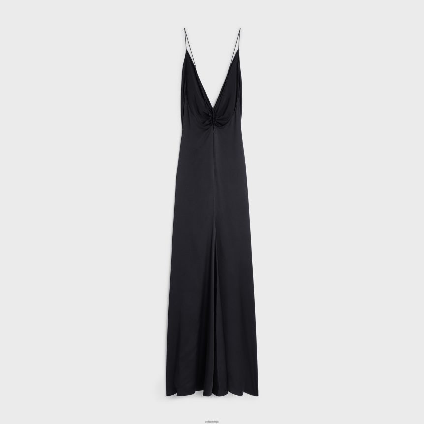 драпед слип хаљина од свиленог кепера црн CELINE Z2BBHT803 Одећа Жене