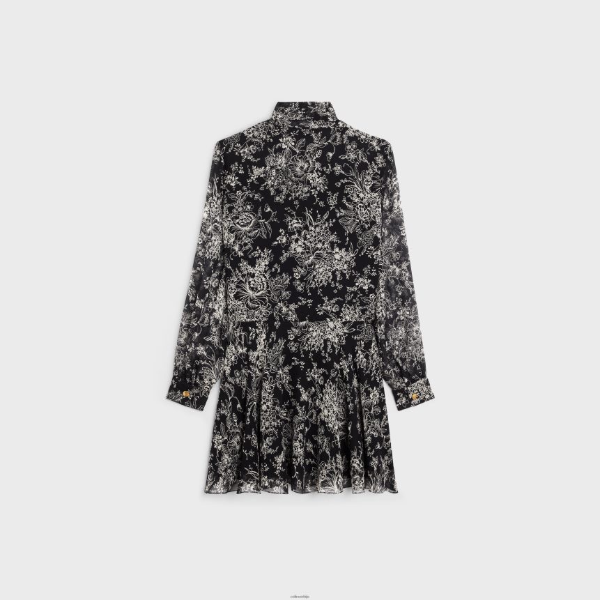 лаваллиере мини хаљина од свиленог жоржета ноир/цраие CELINE Z2BBHT789 Одећа Жене